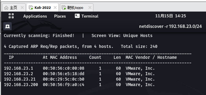 i. 查询一下靶机地IP地址