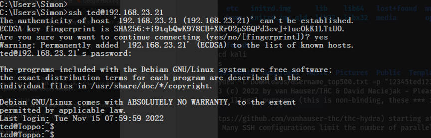 v. 尝试登录ssh